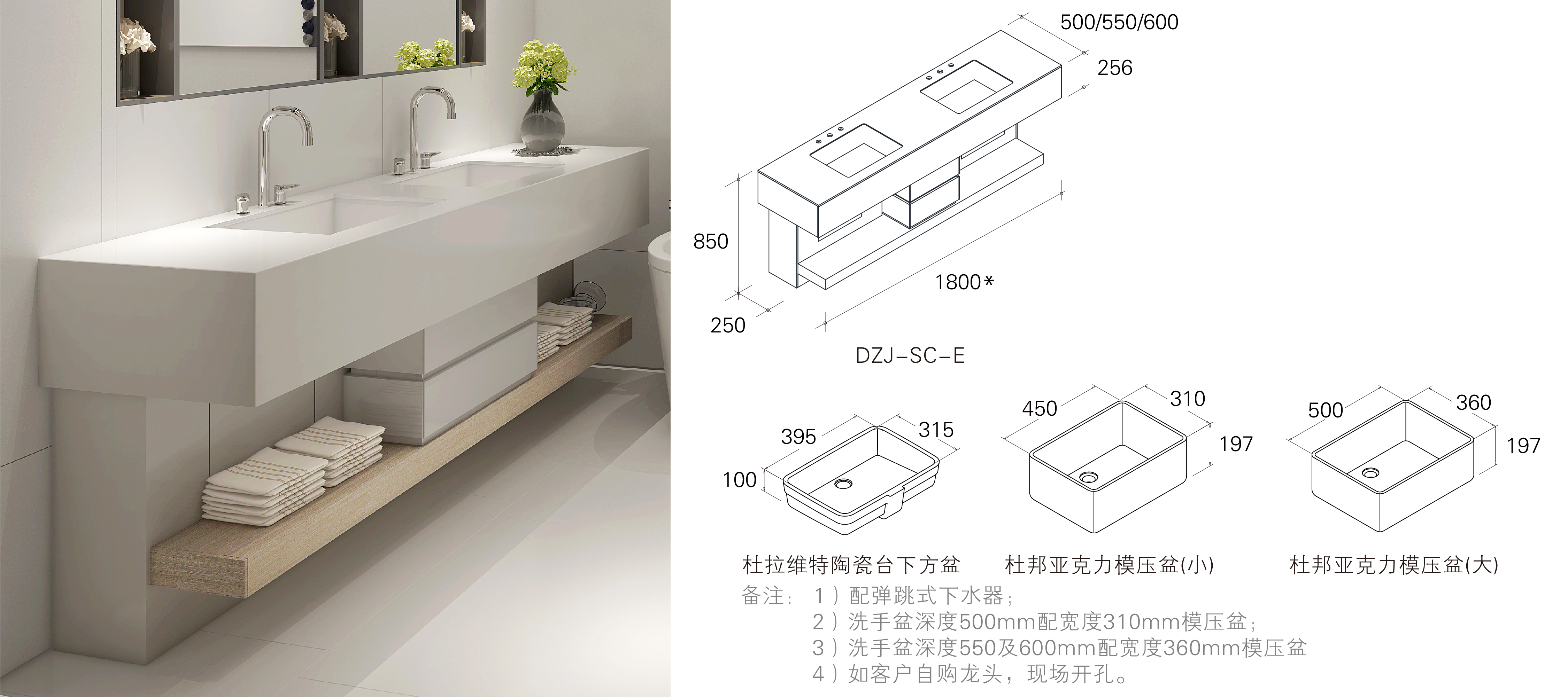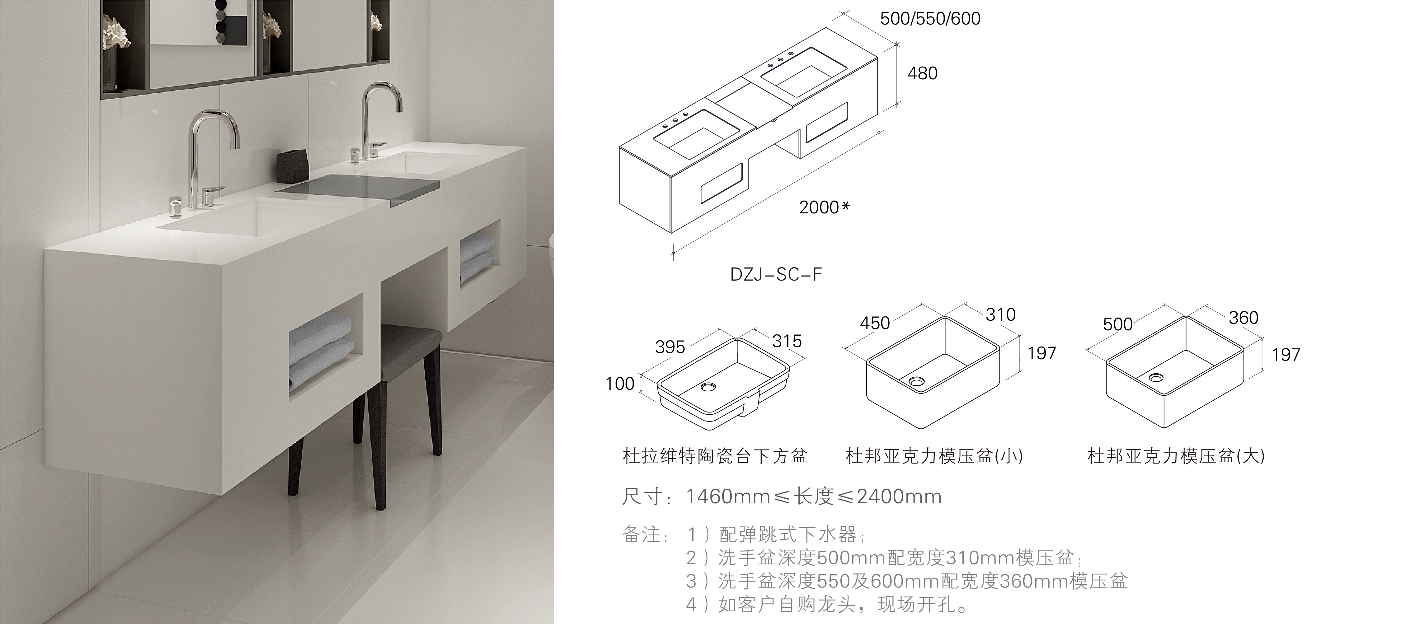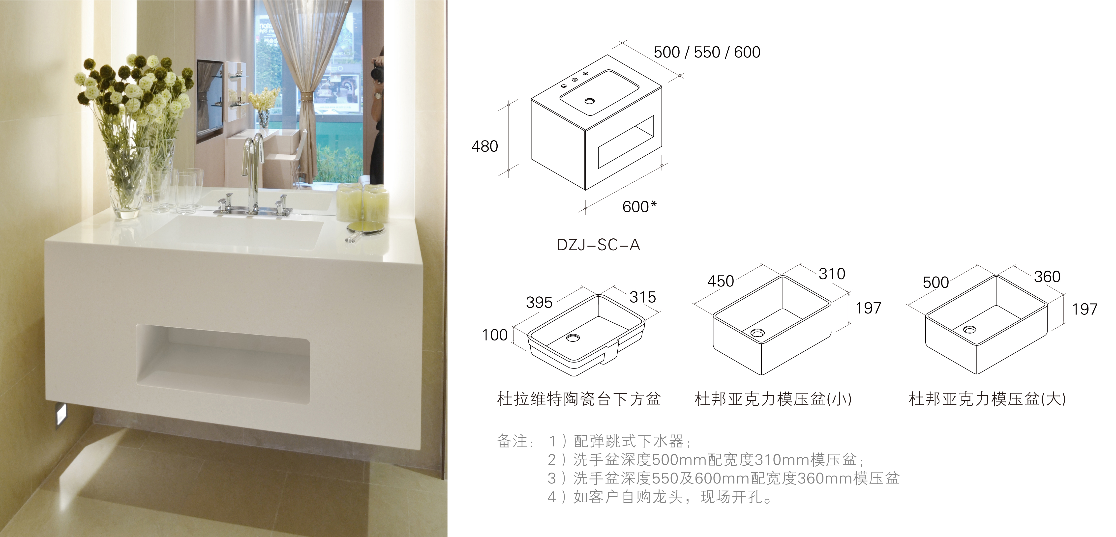 简介:地面水平式设计,大方简洁;杜邦蒙特利人造石材质,质地坚固,耐磨防滑,抗污易清洁。