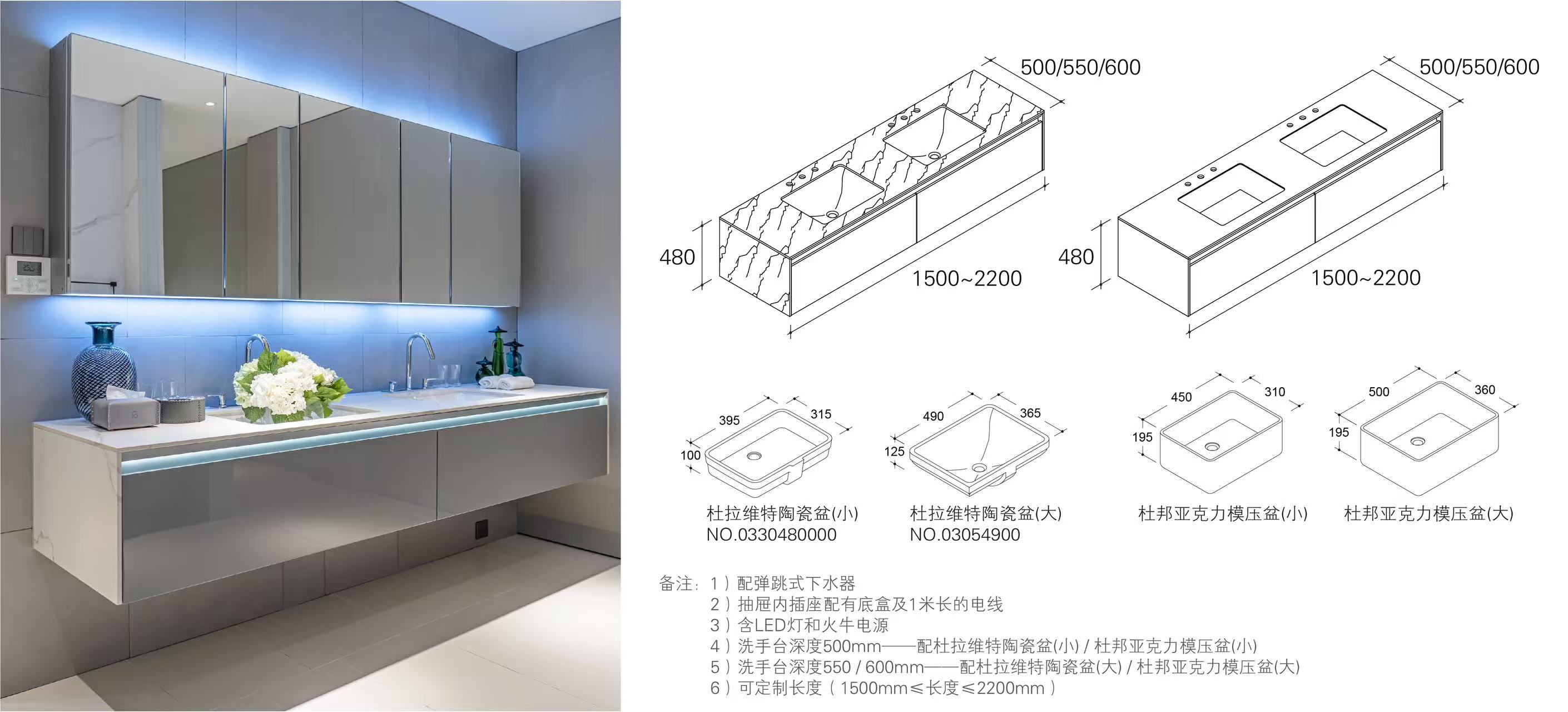 简介:按压式柜门,有效扩容收纳空间;华丽灯光设计,美观实用兼具,打造精致卫浴空间。