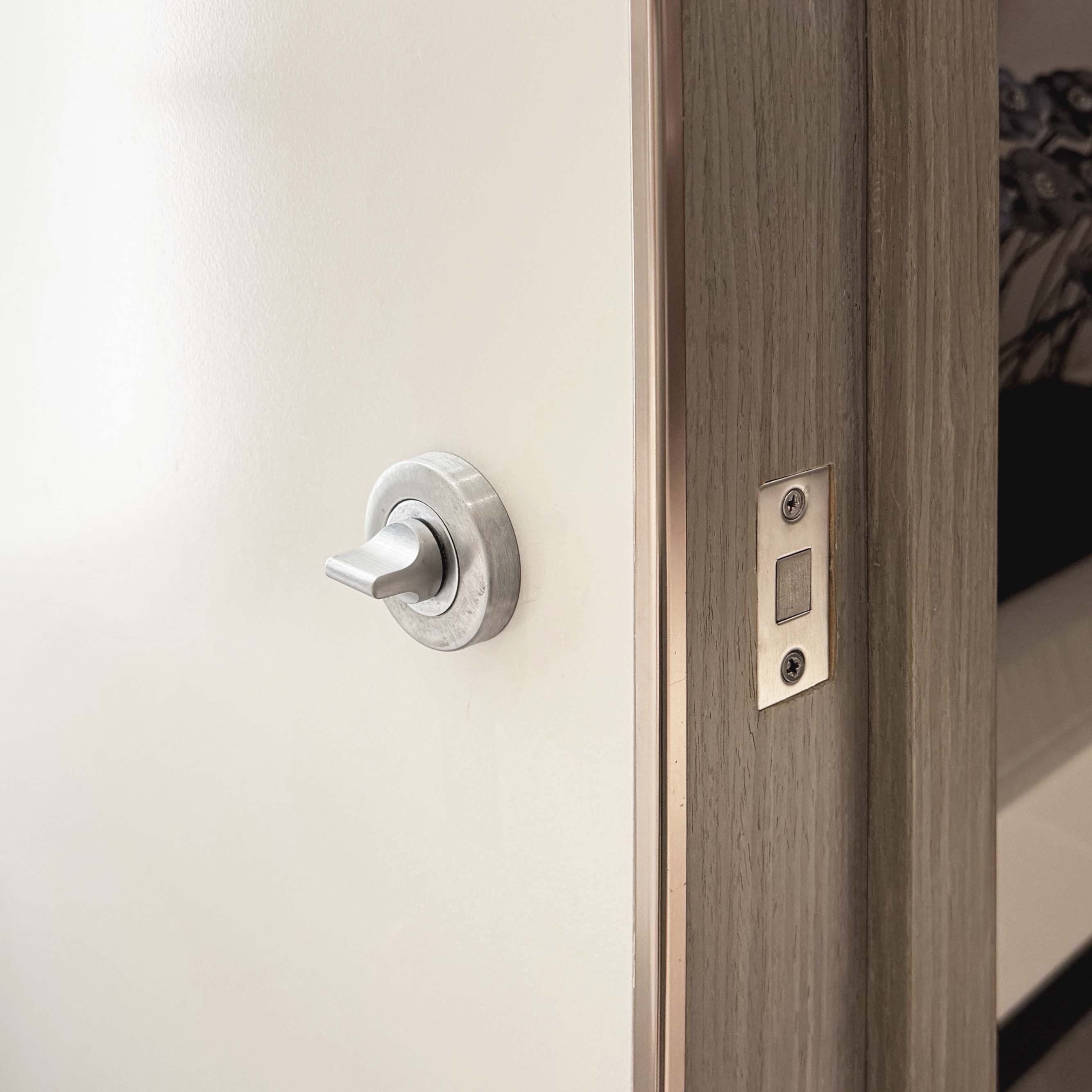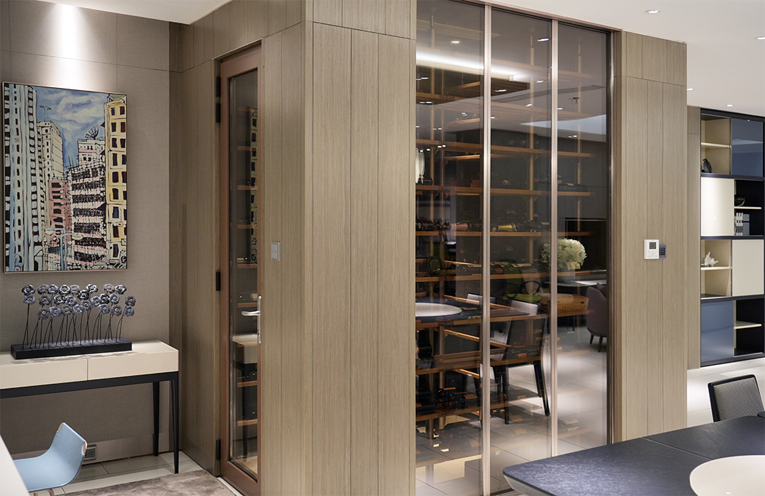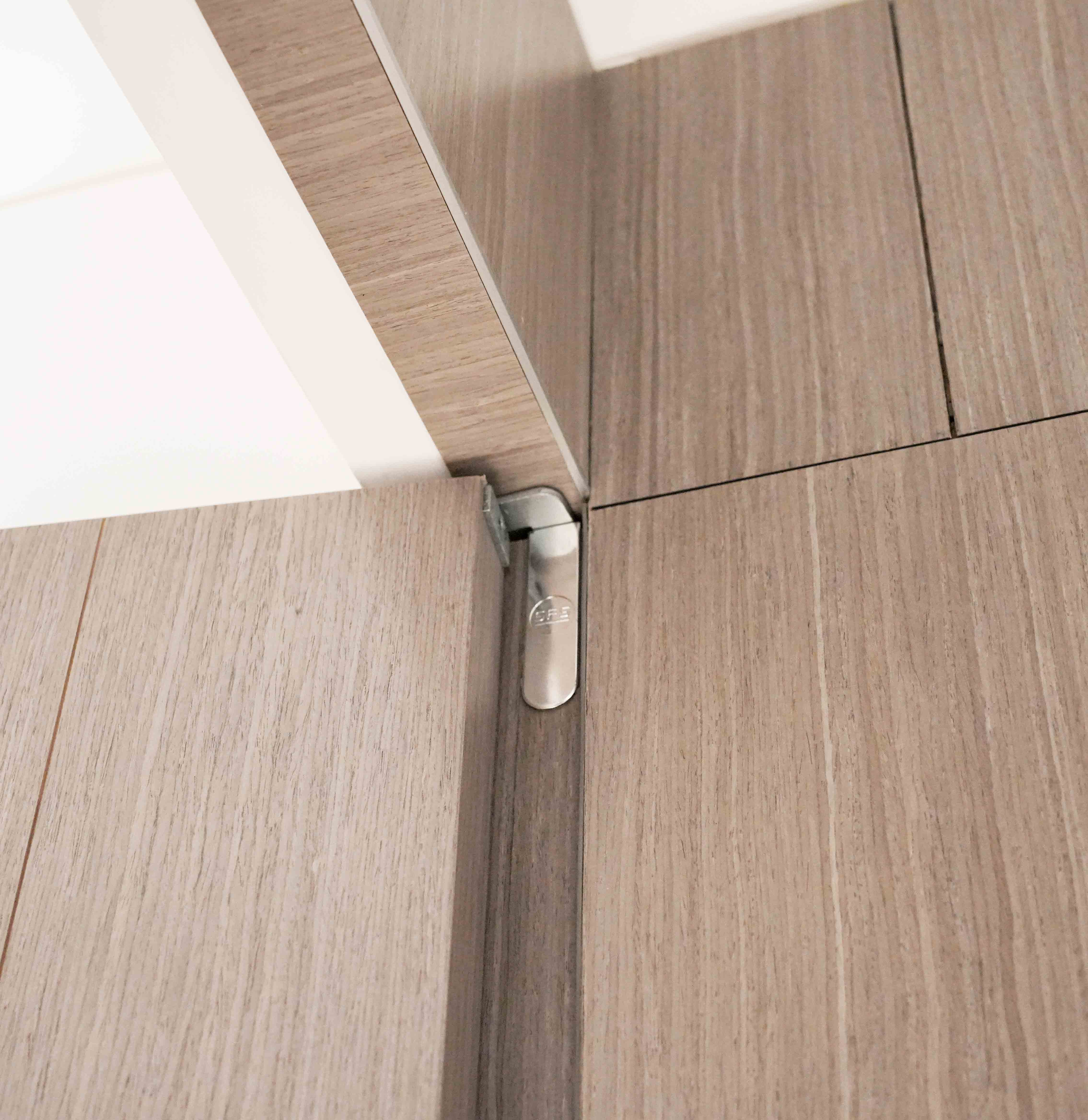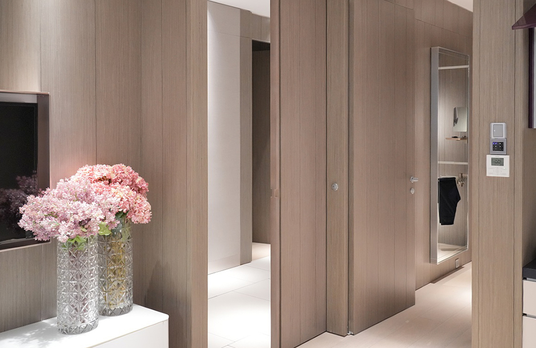 极简造型,线条利落,和墙体完美融合;意大利五金开合顺滑、经久耐用,隔音效果佳。