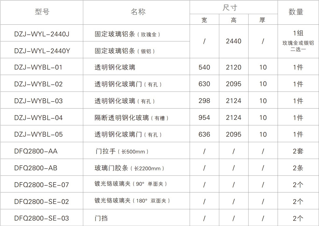 说明:玻璃尺寸可依据施工图纸定制
