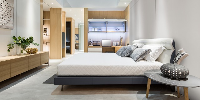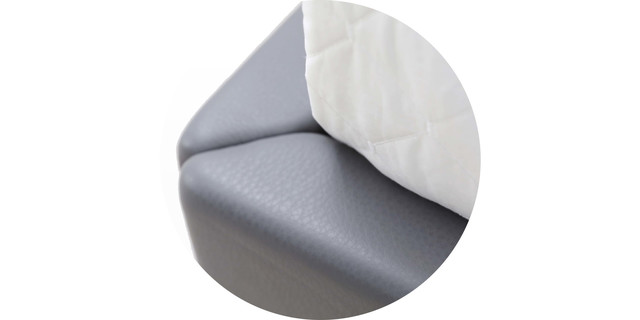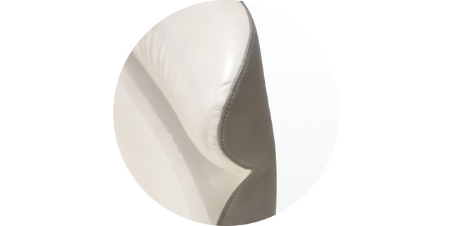 床屏枕头设计,贴合人体背部与颈部曲线;头枕褶皱效果设计,突显质感;真皮床围圆滑设计,贴心细腻。