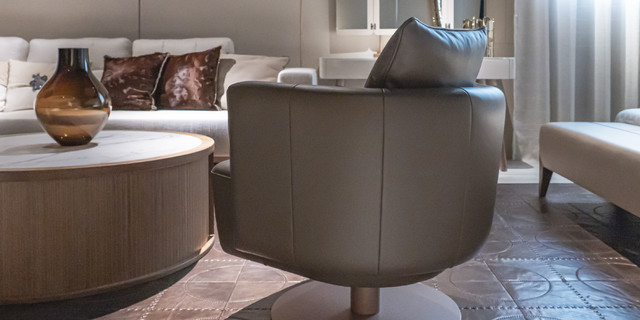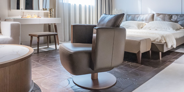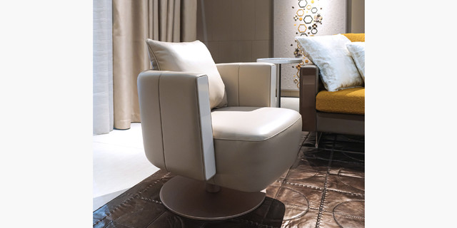 意大利真皮扶手面板亮光钢琴漆/胡桃木/橡木360°转动转盘底座特殊防锈处理