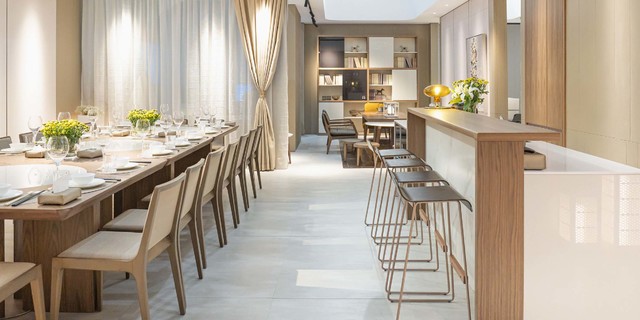 迪信最具代表性的餐椅;采用传统榫卯工艺,结合意大利真皮或布料,整体线条流畅、结构稳固、坐感舒适。