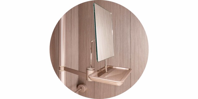 橡木/胡桃木/科技木皮铝合金支架立柱玫瑰金喷砂阳极氧化铝合金拉丝挂衣通多层桦木侧板抽屉德国海蒂诗隐藏式自动回弹阻尼路轨组合设计,可选择多款不同配搭