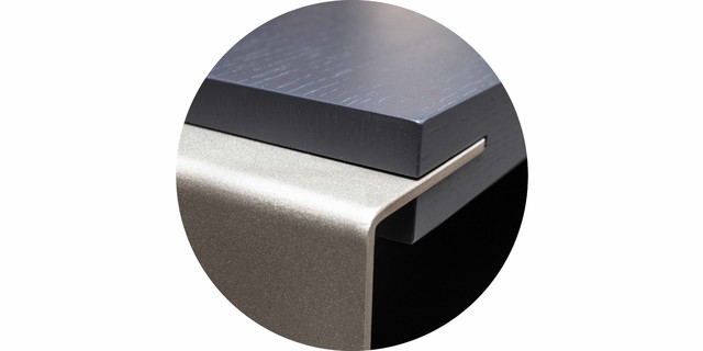 可独立使用,也可作电视柜部件;天然欧洲橡木单板结合玫瑰金厚钢侧板,简洁的线条体验本真状态。