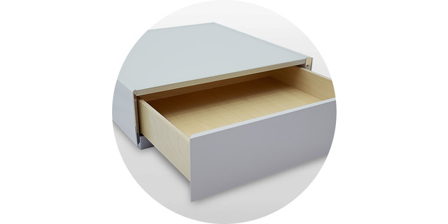 亮光钢琴漆经3层UV底漆和2层意大利PU亮光漆喷涂处理,羊毛球高速抛光5mm强化玻璃柜面柜侧防撞抛光铝合金条多层桦木侧板抽屉德国海蒂诗隐藏式路轨多功能防分离结构可作茶几、边几、地柜和吧台