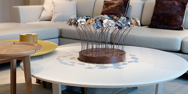 意大利钢琴漆和玫瑰金色脚的结合,简约中求精致,椭圆外形设计,线条流畅。