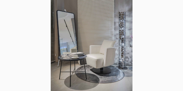 • 亮光钢琴漆镜框,经3层PE底漆和2层意大利PU亮光漆喷涂处理,羊毛球高速抛光• 底材采用新西兰密度板,蜂窝结构• 镜面采用4mm精加工镜片• 铝合金脚架抛光阳极氧化处理