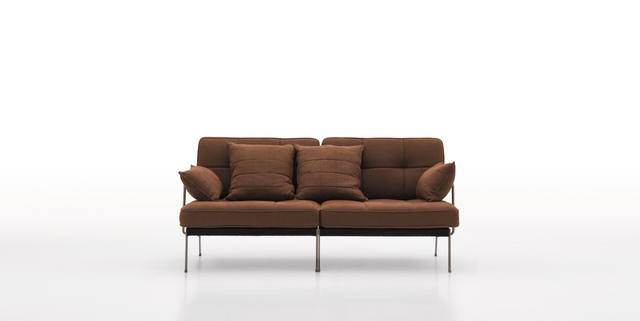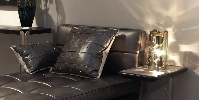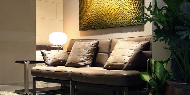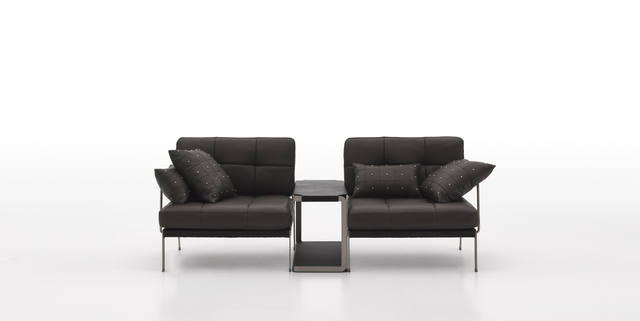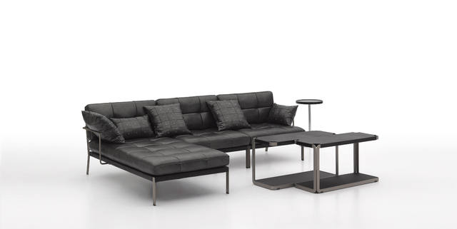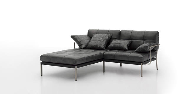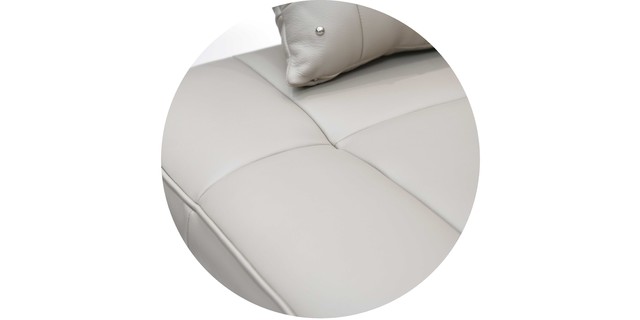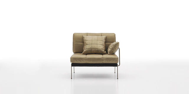 沙发座垫靠垫可选用多款意大利真皮和布料,靠背为皮带扣式设计,可调节松紧;独特的可连接设计,使组合更灵活。