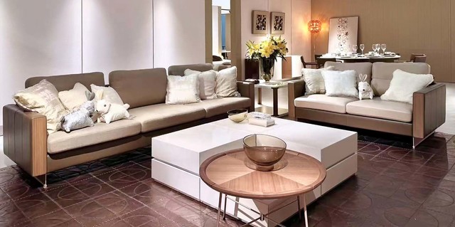 • 意大利真皮/布料面料• 扶手装饰板亮光钢琴漆/胡桃木/橡木亮光钢琴漆经2层UV底漆和2层意大利PU亮光漆喷涂处理,羊毛球高速抛光北美黑胡桃木皮喷涂3层水性透明漆(BW-S)美国橡木皮喷涂3层珍珠黑/哑米开口漆(KYG / KYC)美国橡木皮喷涂3层水性透明漆(WO-S)• 座垫采用高密度海绵• 靠垫填充人造羽绒• 优质夹板实木内架• 底座优质扁钢特殊防锈处理,经1层意大利PU玫瑰金和透明面漆/1层PU深灰面漆喷涂
