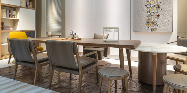 大理石面板质感圆润,圆形的多功能储物柜不分方向,可与茶台搭配作为副台使用。