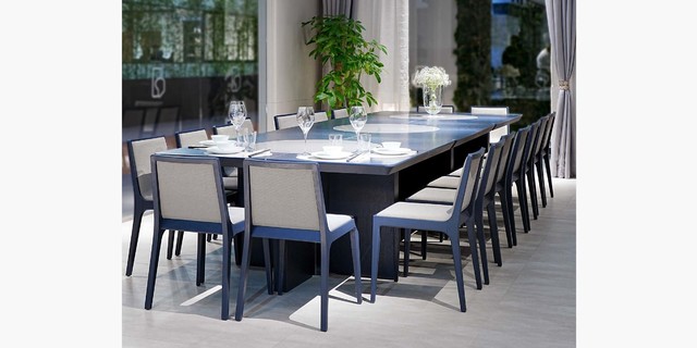 • 迪信自主研发电动餐台转盘,厚度60mm,采用大功率、低噪音电机搭配高强度齿轮轴承设计,运转稳定,噪音小,转盘承重高,最大支持2.3米直径的玻璃,配套遥控器操控可实现正反转、调速等功能