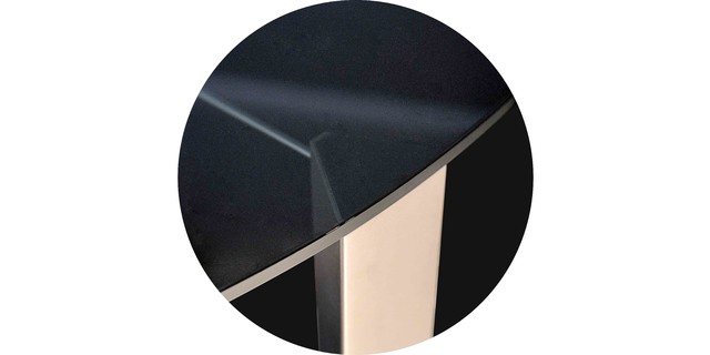 12mm钢化玻璃台面隐藏式不锈钢设计玻璃和铝合金用德国UV无影胶连接铝合金台脚喷砂阳极氧化